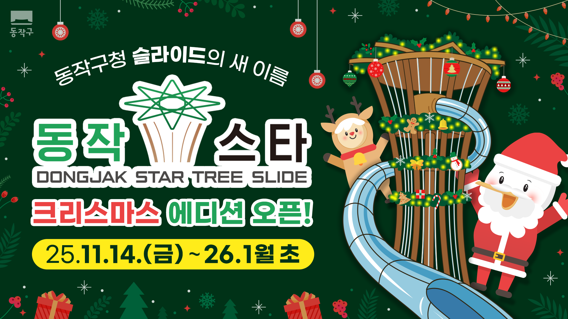 동작구청 슬라이드 가 새 이름 와 함께 돌아왔습니다.커튼 조명이 반짝반짝 켜지고, 슬라이드 주변엔 크리스마스 가랜드와 트리까지 가득!사진만 찍어도 인생샷이 되는 크리스마스 포토존은 덤!▼자세한 내용은 하단의 링크에서 확인해보세요▼https://blog.naver.com/dongjaksaran/224075831019