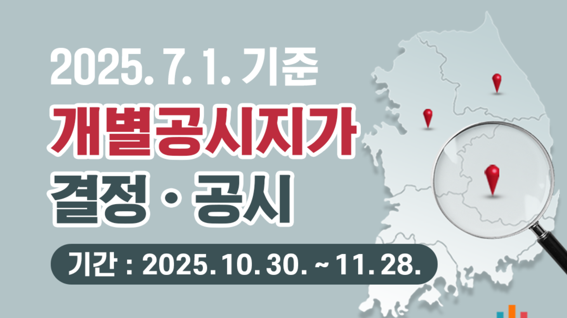 2025년 7월 1일 기준 개별공시지가가 결정/공시되었습니다.토지를 소유하고 계시거나 관련된 이해관계가 있으신 분들은아래 링크를 통해 내용을 확..