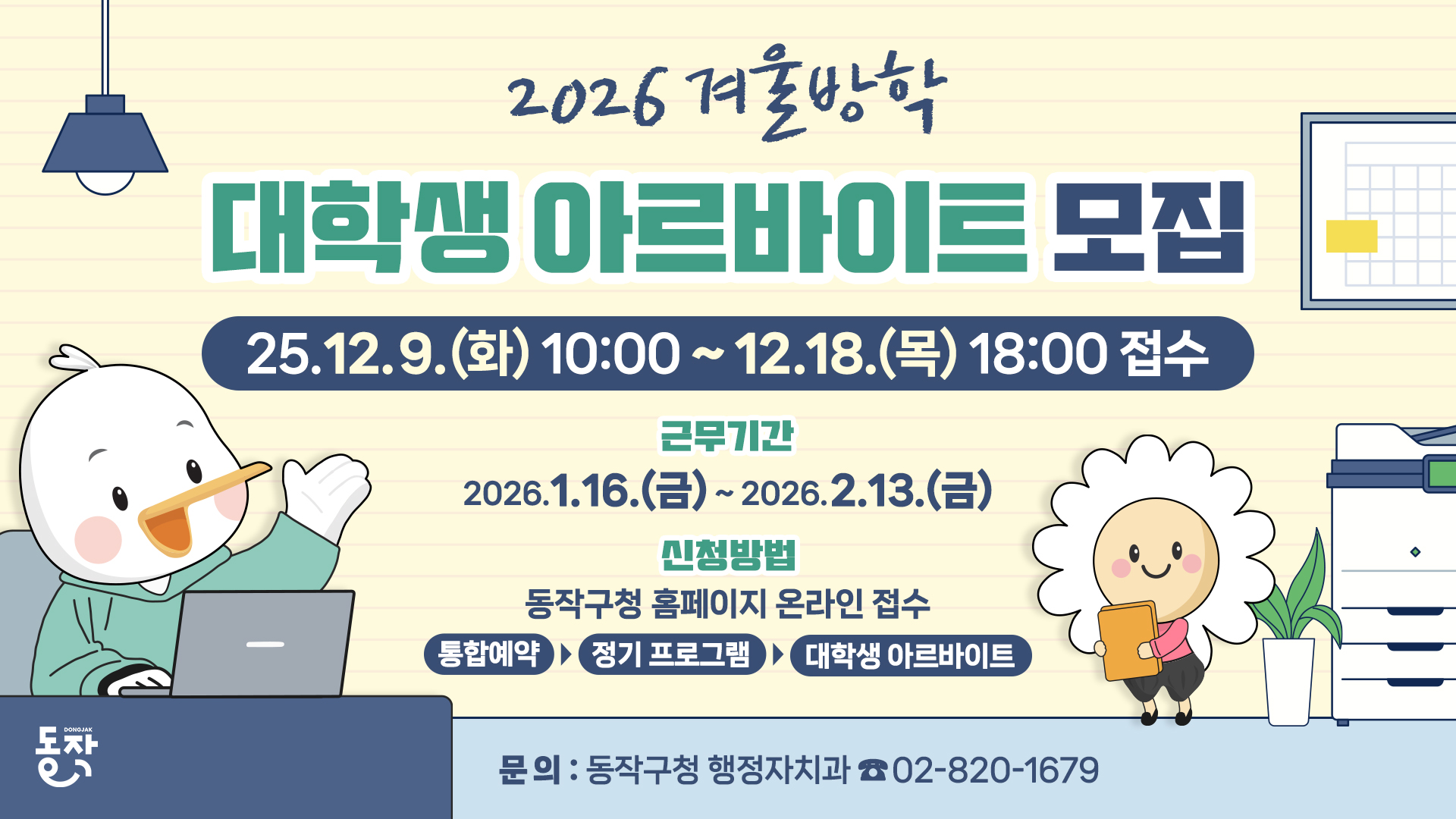 다가오는 겨울 방학, 방학 동안 뭘 해야할지 고민된다면동작구와 함께하는 겨울방학 대학생 아르바이트에서실무 경험과 용돈 마련, 두 가지를 모두 잡..
