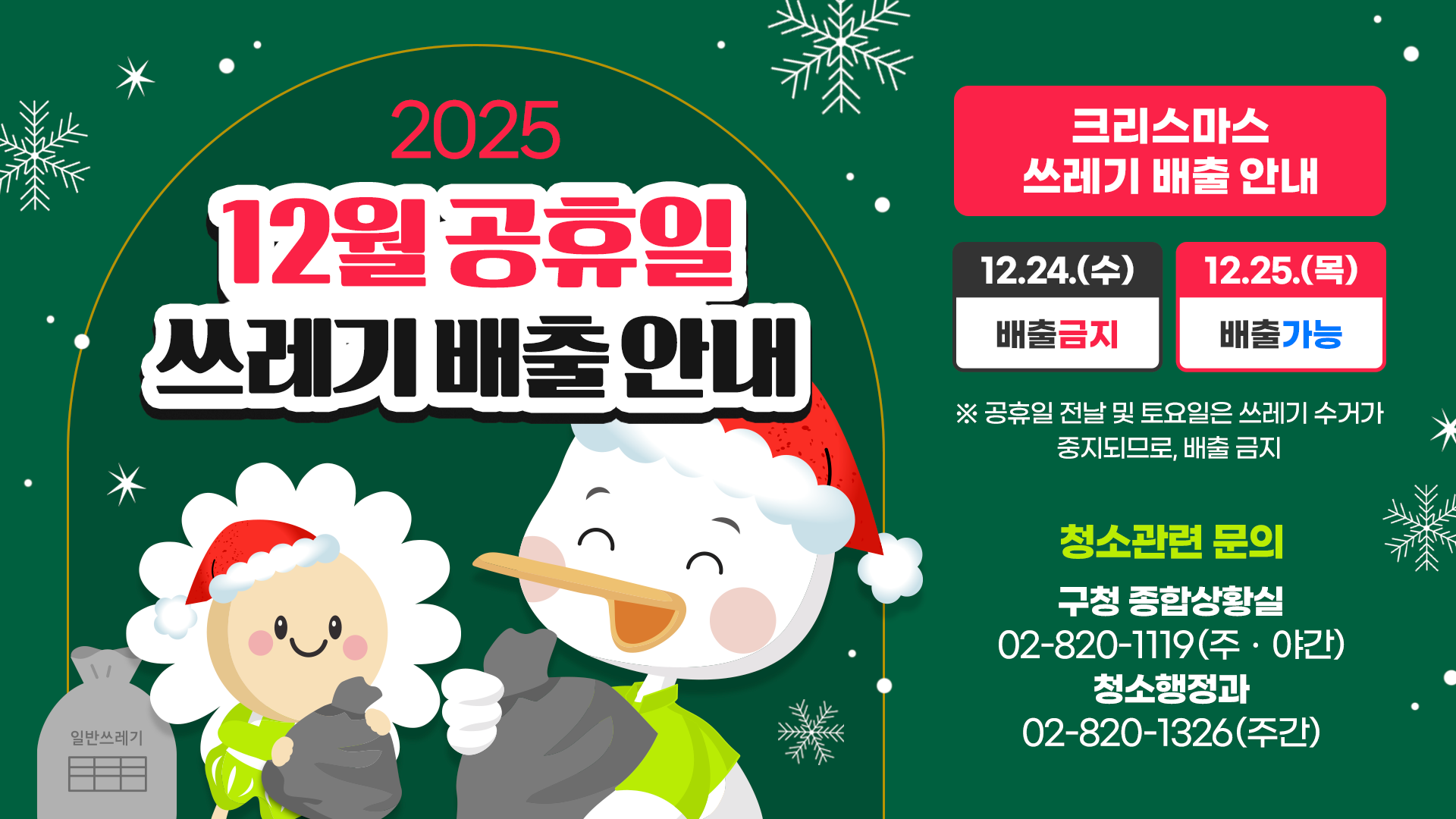12월 24일에는 쓰레기 배출이 금지됩니다.크리스마스 연휴기간, 쓰레기 배출가능일자를 꼭 확인해주세요!▼자세한 내용은 하단 링크에서 확인하세요▼..